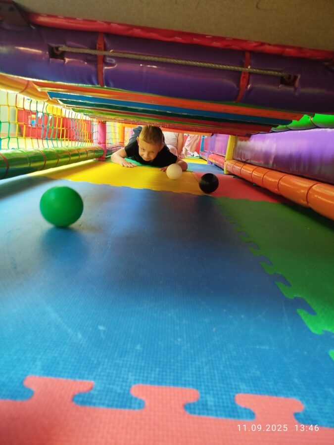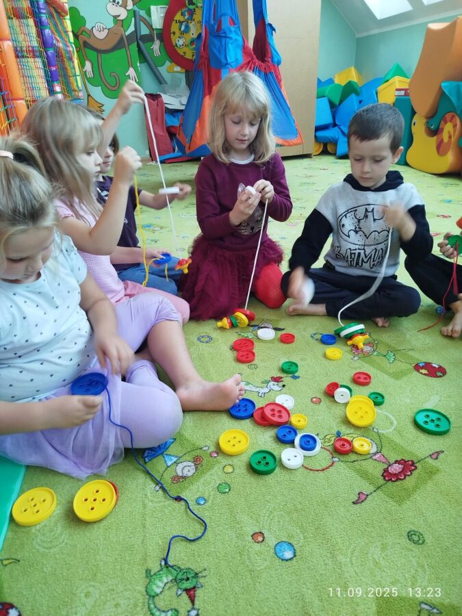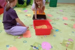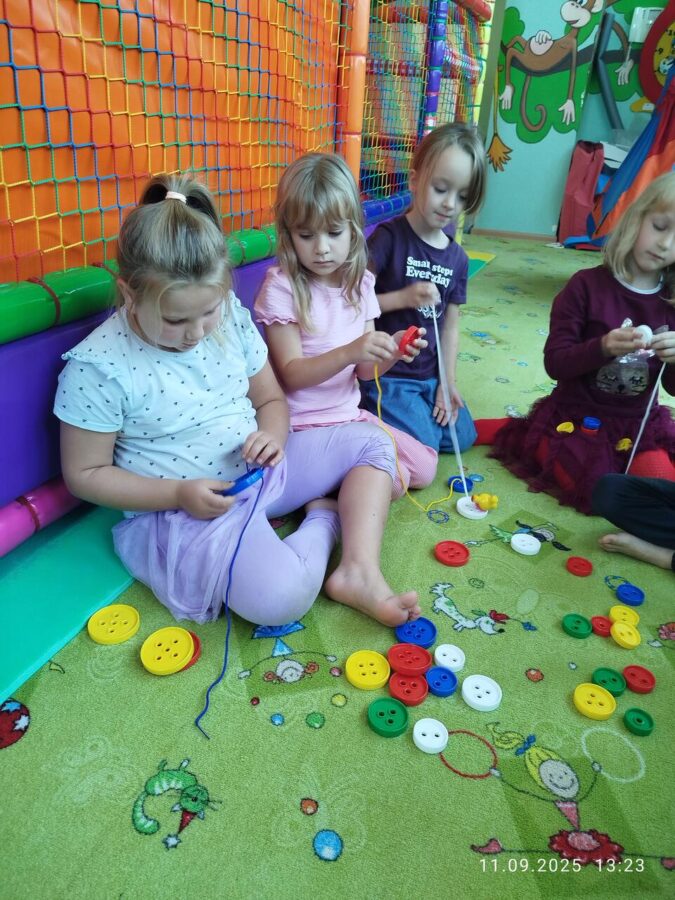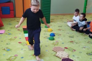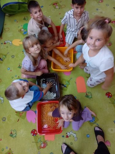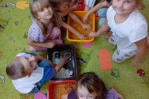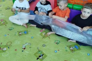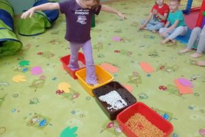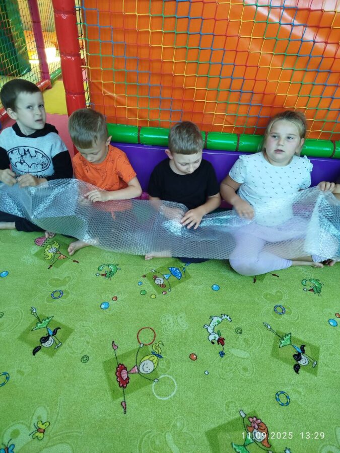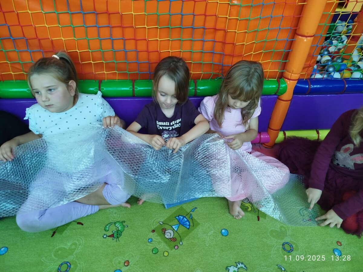 We wrześniu w grupie Jeżyki odbyły się cztery spotkania, zabawy z elementami integracji sensorycznej.Dzieci aktywnie uczestniczyły w proponowanych zabawach, których celem była stymulacja zmysłu dotyku, wzmocnienie motoryki dużej oraz budowanie świadomości własnego ciała.