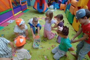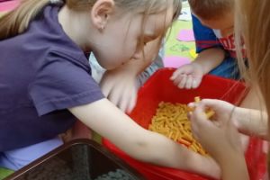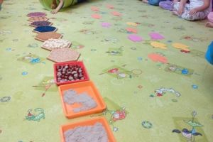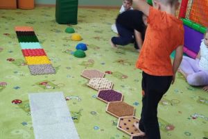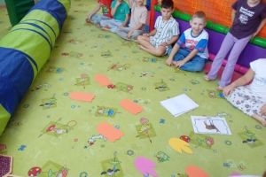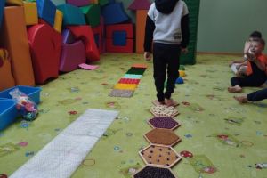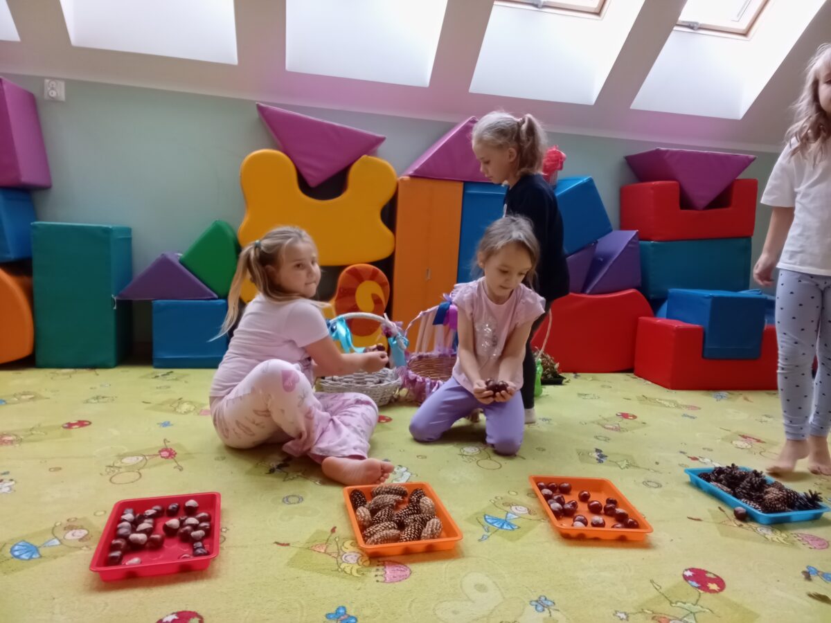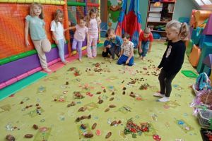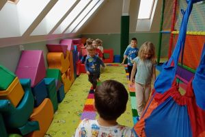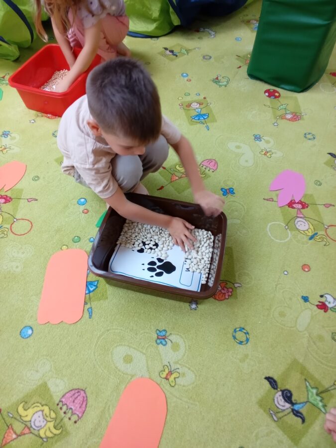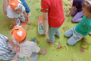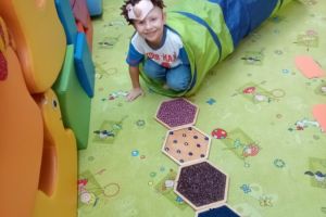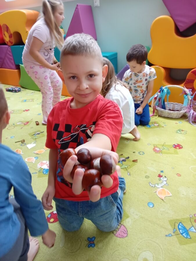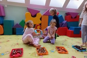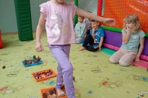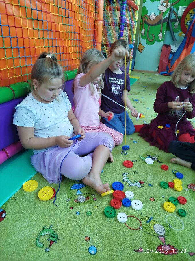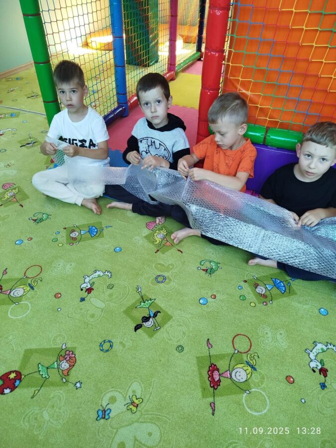 We wrześniu w grupie Jeżyki odbyły się cztery spotkania, zabawy z elementami integracji sensorycznej.Dzieci aktywnie uczestniczyły w proponowanych zabawach, których celem była stymulacja zmysłu dotyku, wzmocnienie motoryki dużej oraz budowanie świadomości własnego ciała.